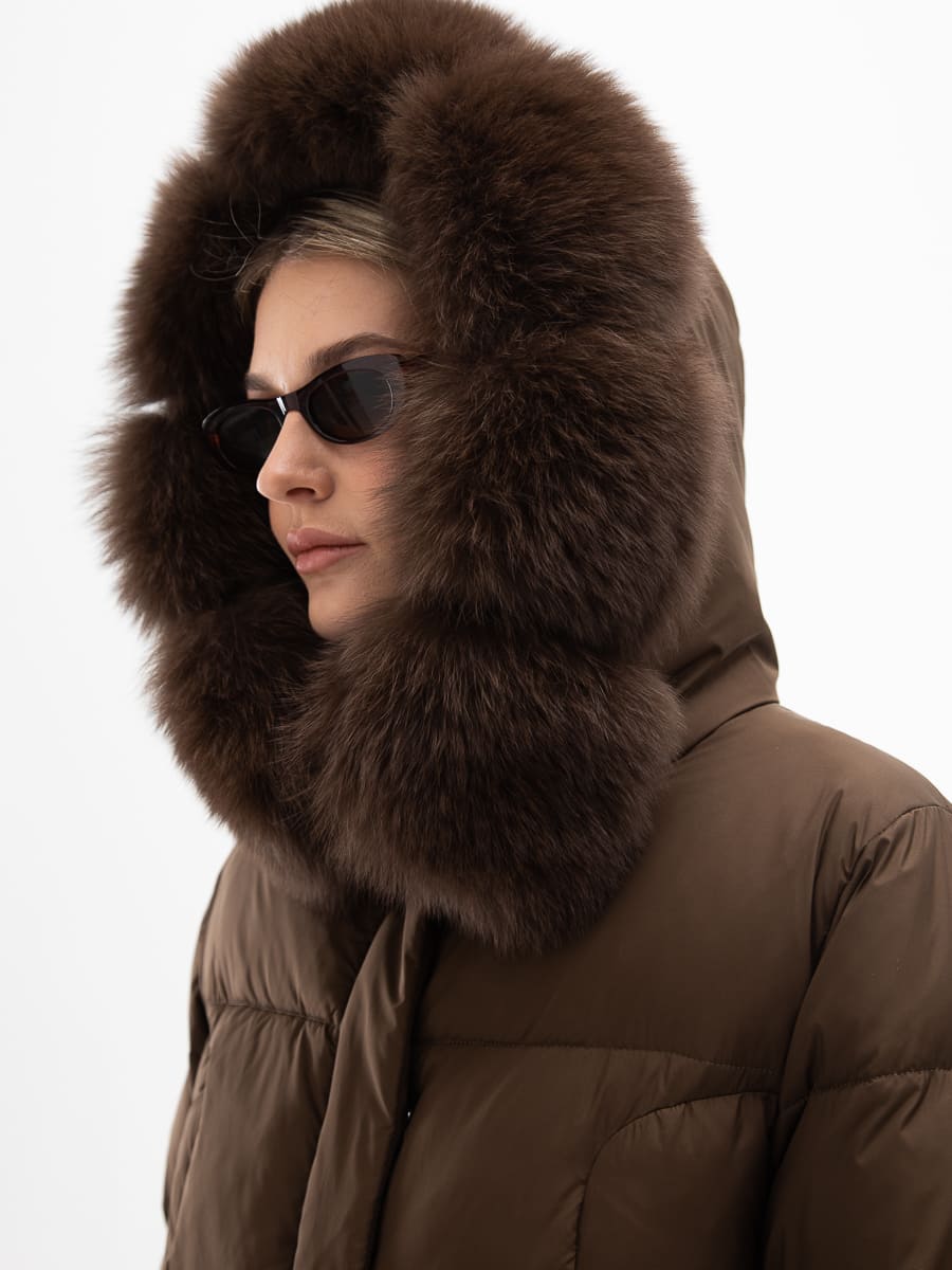 Вид ворота - капюшон, отделка мех песца