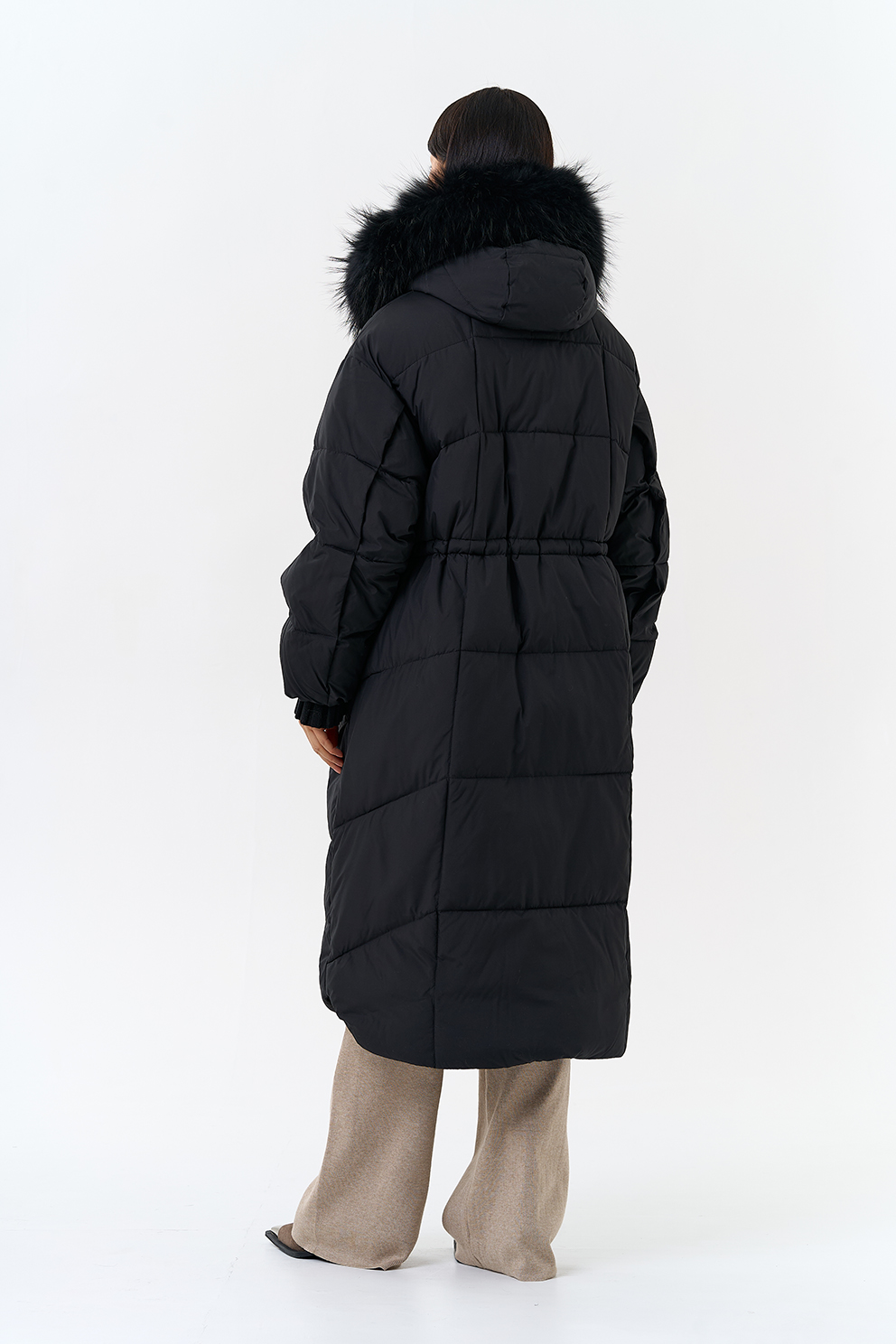 Крой воротника - капюшон, отделка чернобурка
