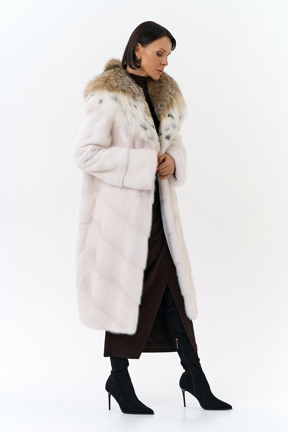 из рыси смотрится изящно. Пластины меха расположены в диагональном раскладе.